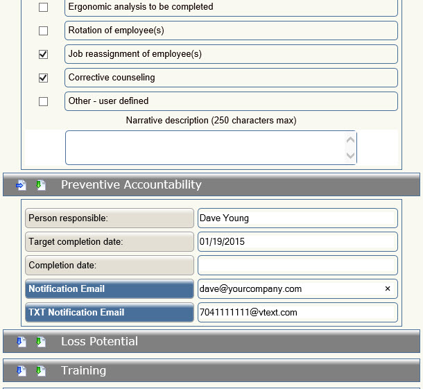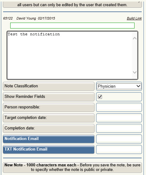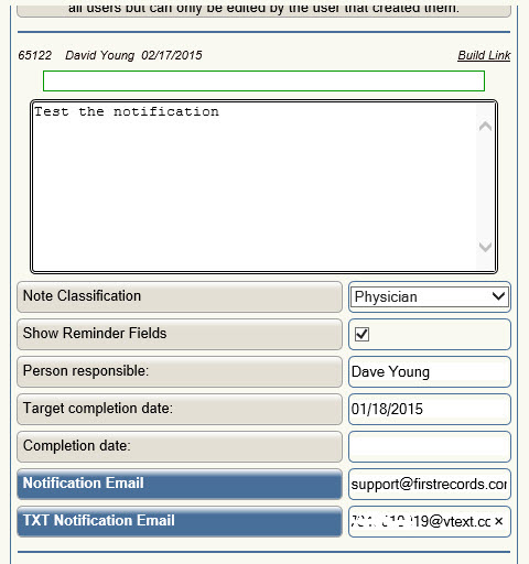Notification Email - email address for reminder based notifications (new on all pages) TXT Notification Email - email to TXT address for reminder based notifications (new on all pages) Note: email to TXT address is dependent on the phone carrier and may not be available for all carriers. (See screens casenote 1, 2 and 3 cpanote 1)